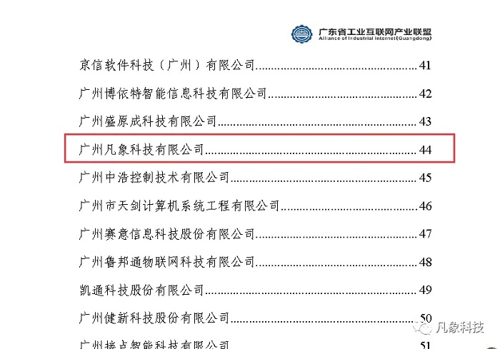 近日,广东省工业互联网产业生态供给资源池企业手册(2017-2019年)正式发布,广州凡象科技有限公司位列其中。